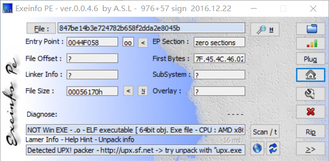 simple-unpack 2021-01-18 | 阅读:次 目录 simple-unpack simple-unpack 用exeinfope打开,发现是UPX压缩壳,用UPX Tool解压缩,得到ELF文件,用IDA打开得到